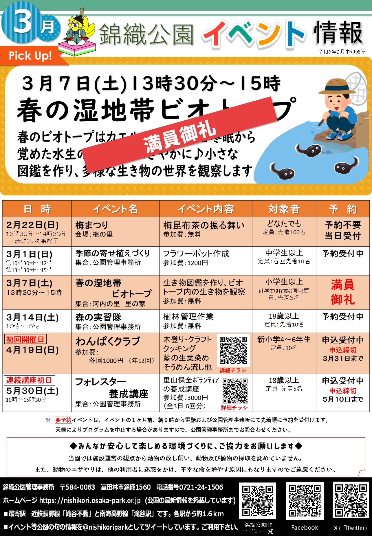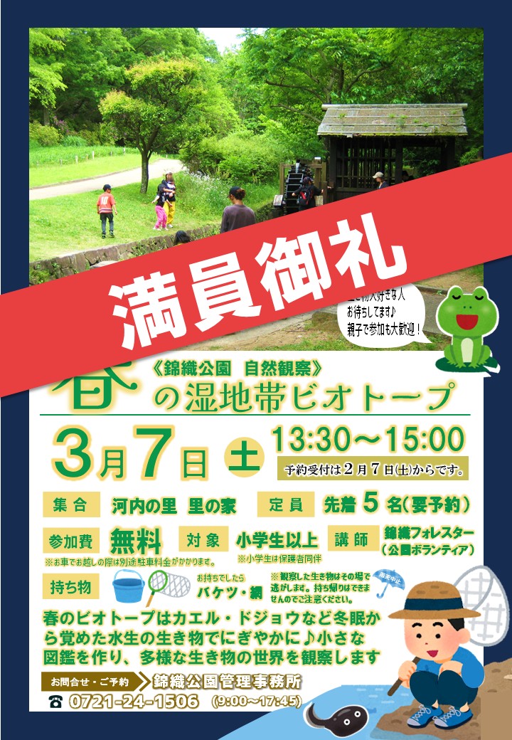 内容 / 春のビオトープは冬眠から覚めたカエルやドジョウ・ザリガニなどでとても賑やかです。